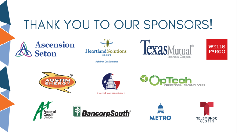 Executive Sponsors: Ascension Seton, Heartland Solutions Group, Texas Mutual and Wells Fargo, Familia Sponsors: Austin Energy,Campos Consulting Group and Operational Technologies Corporation as well as the Amigo Sponsors: A+Federal Credit Union, BancorpSouth Bank, Capital Metro, and Telemundo Austin for making our digital Annual meeting possible!