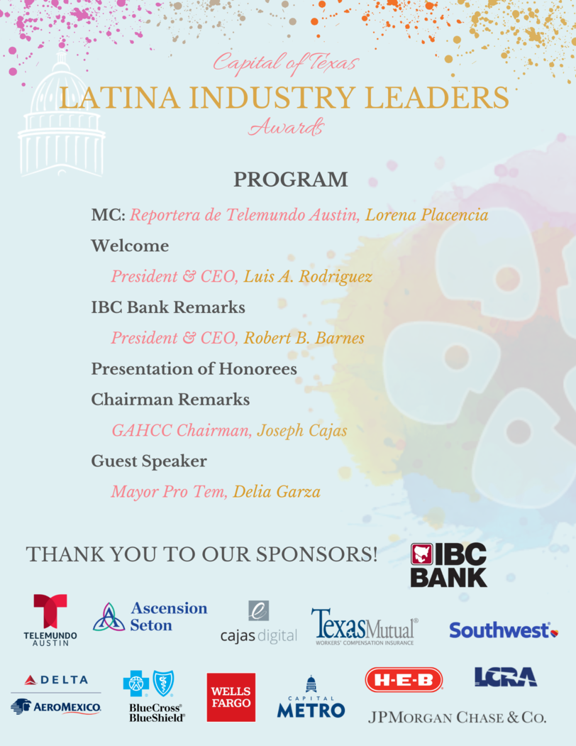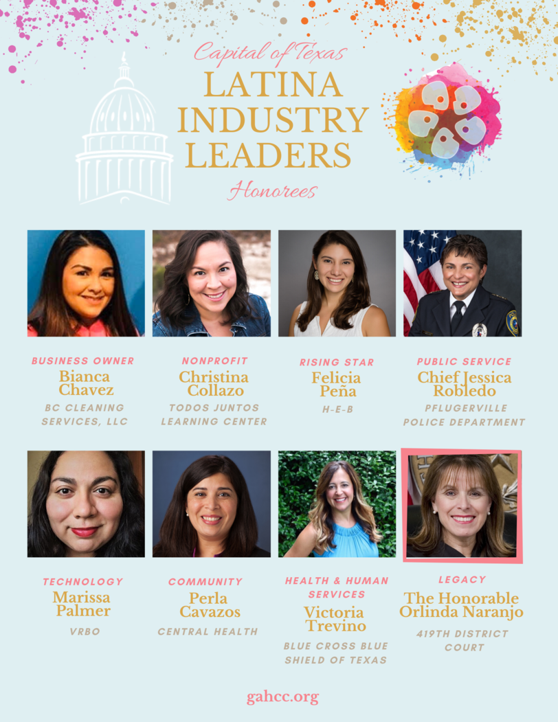 Business Owner: A Latina-professional who owns or successfully runs and operates a business providing superior services for her clients in the Greater Austin community