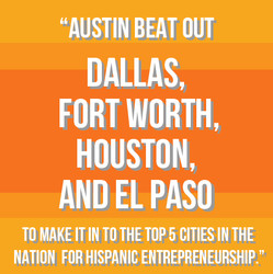 Here in the 512, we've got even more bragging to do. That's because the great state of Texas contains 18% of Hispanic-owned firms in the U.S. and the city of Austin contains 1.6% of Hispanic-owned firms in the U.S.2. This puts Texas in second place just behind California; and it puts Austin in fifth place behind New York, San Antonio, Los Angeles, and Miami. That means that Austin beat out Dallas, Fort Worth, Houston, and El Paso to make it into the top 5 cities in the nation for Hispanic entrepreneurship. This a positive sign, but it means that our work is just getting started. Austin needs to continue to support our Hispanic-owned businesses by helping them scale and network. Moreover, Austin needs to continue to look toward the future by recruiting a new generation of Hispanic entrepreneurs.